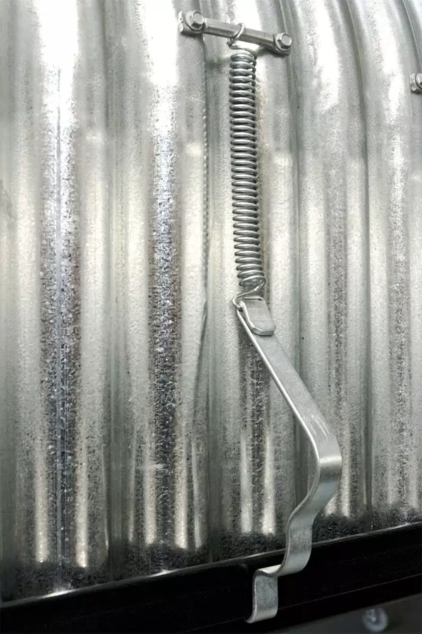 Our ergonomically designed hook is easy to use with two hands. The tension spring and steel pin hold the cover fitted into the T-profile. A T profile must be welded along the conveyor structure.