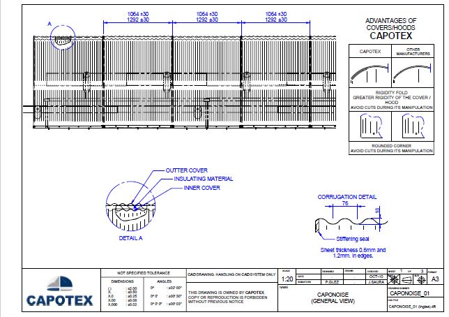 The best materials. The wall contains thousands of small holes that allow the sound waves to pass through, preventing the noise from being amplified by the bounce effect. The middle layer contains the noise absorbing material to reduce belt noise, the thickness depends on the amount of noise emitted and the reduction required for the conveyor. The outer cover prevents noise from escaping and protects the inside of the belt from rain, wind and sun. The system also provides a completely safe installation against the risks and dangers associated with belt conveyors.