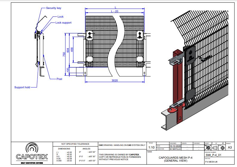 Conveyor charge belt side guard metal mesh with special key (P4)