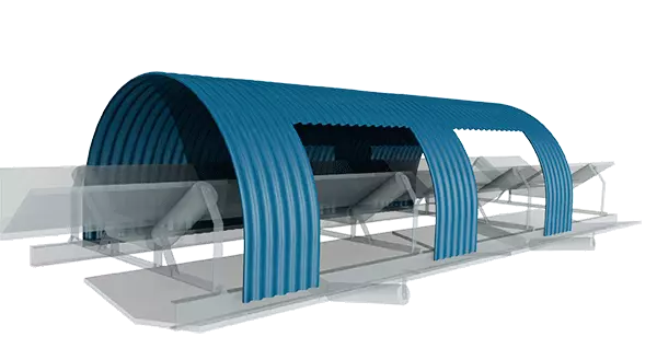 Die Abdeckhauben von Durban bieten einen visuellen und manuellen Zugang von einer Seite des Bandes, ohne dass etwas demontiert werden muss. Sie schützt das Band von einer Seite vor Regen und Wind und lässt gleichzeitig genug Platz, um das Band anzuheben und die Rollen auszutauschen.