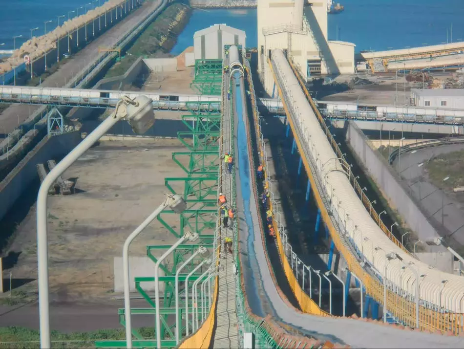 Belt conveyor hood mineral transportation at Jorf Lasfar OCP Imasa