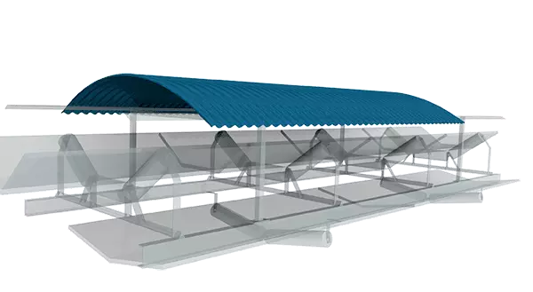 Le modèle Capoarc est une couverture de type toit qui est installée pour couvrir uniquement la partie supérieure de la bande transporteuse. Il peut être fixé à toute structure existante.